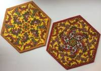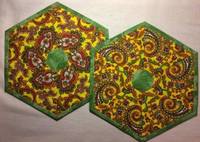 tata60, Krolik, ШИВА, Alika, VESNARED, Серединка, Annuшka, Gerata, Мазая, Tampa, Tusya, АнютКа, девочки, милые, спасибо за добрые слова, очень приятно их получать, хоть может особо и не за что. Калейдоскопы сами по себе такая благодатная техника, была бы тканюха подходящая, а уж что-нибудь да получится ! Шьешь и каждый раз не знаешь - какой рисунок будет,  но все - нравится, как правило.  Салфетки получились от 24  до 27 см в диаметре. А сегодня вот  "добила" и остаточки из полос - сделала две прихватки, мы ведь хомячки, нам жалко и остаточков  ;D