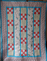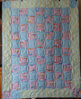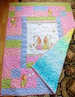 это одеяло из нашего готового набора квадратов сшила девушка, которая никогда не занималась лоскутным шитьём), от меня - стёжка.