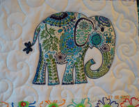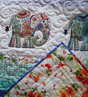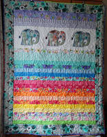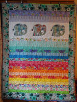 Ну и вот -готово одеяло с индийскими слонами!!! Лоскутный верх прислала Людмила Luchie. Я собрала и простегала... :blush: и Люся, тапком не кидай, не удержалась я... пришила кайму (что удивительно зелено-голубой цвет этого раритета из прошлого века идеально совпадает с твоими тканюхами) и размерчик получился 130х160см окантовку тоже решила в итоге "развеселить") второй день дождик и очень пасмурно, фото никак не получается нужного цвета(
