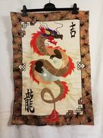 Не читала уже что советуют девочки, возможно повторюсь. Дракона не стегать! Только по контуру! Можно еще внутри пройтись вокруг деталей, что бы дракон сильно не запузырился после стежки фона. Иероглиф по контуру. А фон нужно чем то совсем простым простым. Пожалуй я бы стегала вертикальным линиями, не шире 1 см