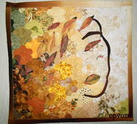 Этому "шедевру" уже лет семь.Я тогда была совсем начинающая лоскутница. Это моя первая ручная аппликация. Кривенькая. Но как смогла. Но работу эту люблю. Называется "Автопортрет .Мой возраст осени." Мне тогда аккурат 45 случилось. Решила, что жизнь к закату пошла (сейчас уже так не думаю). Висит у меня в гостинной на самом почетном месте. Надеюсь рядом повесить Ирискиного нелинейного кота.