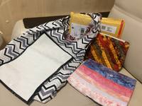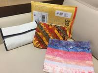 Яркая косметичка , набор отличнейших Фэт Квотеров (12 штук!!!) - нежнейший батик, а то,что смотрится как клатчик - на самом деле сумка, убирающаяся в кошелечек. Сумка на подкладе, О-О-Огромная ))), похожа на пляжный вариант. Много чего туда можно поместить !