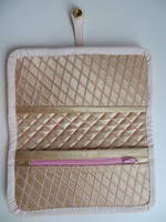 Девочки, поздравляю всех получивших подарочки. Я уже "учу уроки" по подаренному МК. Показываю первую пробу. Много недочетов, но шила из старого плаща, не нашла подходящего шнурочка и вставила сутаж, а он плохо встал на углах. Но на ошибках буду учиться, второй получится лучше, очень на это надеюсь. Еще раз спасибо моей снегурочке Амурке.