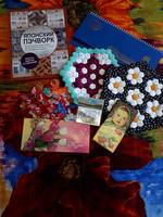 Вчера получила неожиданный и просто ОГРОМНЫЙ ответный Новогодний подарок от Инны! Невероятно яркую и сочную панельку с цветами, книгу по японскому пэчворку-это что-то  :good: две очаровательные ГЕКСОсалфетки-я их уже затискала совсем, большущую кучу всевозможных термонаклеек, планинг, магнит, открытку с поздравлениями и две шоколадки на любой вкус, горький шоколад сразу же был экспроприирован моей мамой, т.к. все мои посылки с почты таскает именно она, а мне достался любимый мной нежно молочный шоколад, т.к. по моему стойкому убеждению шоколад должен быть вкусным, а не полезным  :-X