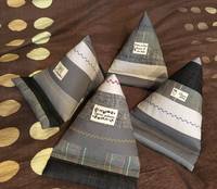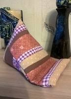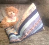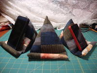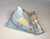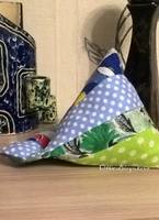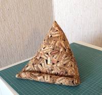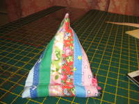Складываем пополам по длинной стороне "лицом" внутрь, прокладываем строчки, сшиваем «мешочек», оставив по одной из длинных сторон от сгиба открытый участок, чтобы потом «набить» валик. Его лучше оставить со стороны, с которой вы начали сшивать кромки, чтобы при набивке «нахлесты» не «задирались» и не мешали. (* А если в одну из длинных сторон вшить молнию, то  пирамидка сможет поработать хранилищем-заначечкой.  Ну, это так, во время шитья мысль пришла. Может есть у вас желание и лишняя молния).