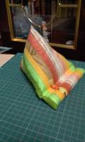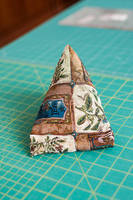 Несколько слов о размерах. Перемычка между валиком и пирамидкой удобнее всего размером в ¾ дюйма. Дюймовая будет неплохо, если увеличить и ширину валика (чтобы использовать наш шедевр как подставку для книг, например). Если основой пирамидки была квадратная деталь, то угол наклона будет приблизительно 60 градусов (от поверхности стола). Если нет, то тогда угол будет или более крутой, или более пологий (смотря какая из сторон шире). Можно выбрать себе наиболее удобный.