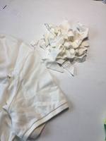 Теперь набивка. Для нее подойдет любой мягкий мусор или нечто сыпучее, фасоль, например, или мелкие полимерные шарики из мягких игрушек, или вообще бусины (вдруг у вас их залежи). Я набиваю вот такими мелкими трикотажными лоскутками, на которые кромсаю бывшие футболки.На эту пирамидку ушла 1 женская футболка с короткими рукавами  размера М из трикотажа средней плотности.