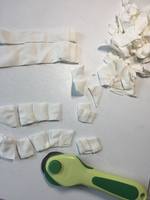 Вырезаем нужный размер (см. выкройку), прокладываем строчки вдоль коротких открытых срезов, как бы закрепляя их, чтобы в процессе набивки швы случайно не разошлись.