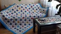 ну вот и мой"Голубоглазый мальчик"-добежал до финала,р-р 175 на 230 .блок на 5"-еще один долгострой получил завершение,а то уже столько накопила,что и начинать что то новое мысли о них не дают ,теперь еще 4 пункта и "синий"в машинке-это к слову для Ганнуси-все время помню -принимайте его в компанию