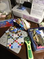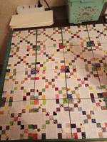 ИрВасик, Ириш, у меня в качестве отчета куча скрапа (в наличии нарезанные двухдюймовые квадратики на весь квилт и дюймовые полосы в безумном количестве) и первый пробный блок. Ну, что сказать? Шить я не умею, это теперь абсолютно понятно   :girl_impossible: Ни одного ровного квадратика  :crazy:, но процесс медитативный, нравится  :tender:, буду продолжать  :kavalerist: