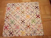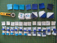 Volha, когда малюсенькие квадратики, то под линеечкой они вертятся. Но в этом квилте они не такие уж и малюсенькие. У меня по 4 см с припусками. Эти ничего, ровно режутся. Хуже four-патчи по 3.2 см, вот эти-заразы так из под линейки и норовят выскочить.  >:(