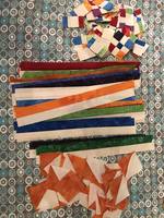 ИрВасик, Ириша, месяц заканчивается, мой переезд близится. А мне тут освободили денек для отдыха, ну и я отдохнула. Не знаю, на каком этапе последний раз отчитывалась тут, но за день смогла сшить только один блок из найн-патчиков, но зато прилично так смогла нарезать. (Медленно так получается, еще потому, что поняла, что надо сначала очень много разных цветов нарезать, чтобы красивые найн-патчики получались, иначе они все одинаковые.) Итого у меня: вот столько нарезано для найн-патчей; вот столько для второго блока с вертушечкой; и сшито 3 вот таких блока и 9 вот таких .