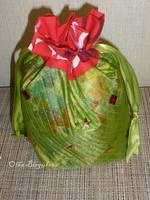 Пицца с 4 слоями зеленой органзы - списала у Оли-VESNARED  :blush:, она летом сумку такую шила. Правда стегатель из меня тот еще - все очень простыми путями  :blush: Стоит хорошо, не шелохнется  :D Практически эко-мешок: пицца сами понимаете из каких богачеств, органза и ленты - от букета цветов  :D