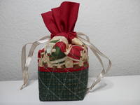 Ну вот и порешили единогласно - будем мешочки шить - кстати, их можно и не из новогодних тканей шить - тогда готовьтесь, вам понадобятся 2 четвертушки ткани + кусочек наполнителя + тесьма или веревочка. Можно одну из четвертушек заменить на панельку (у меня на фотографии остатки бордюра в дело пошли). Предупреждаю сразу: сшить один и остановиться будет трудно  :crazy: