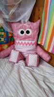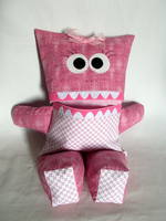 Меня тоже разадорил это пожиратель пижам и пошился явный вариант девчонычный - специально шила в подарок дочурке моей подруги.  Вот только конечный размер мне показался великоват (31*42см) для детской пижамки. Я не набивала спину, т.к. хорошего наполнителя у меня сейчас нет, а тот что есть, я боюсь, что после стирки весь свалится вниз комком и потому я все детали проклеила клеевым синтепоном и сшила внутрь подушку, которую можно и не вынемать, если вкладывать небольшую пижаму.