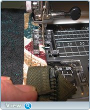 Если у вас нет такой лапки не паникуем   Можно оставить обычную, но тогда расстояние между строчками придется чертить или прострачивать на глаз. И не забудьте убрать давление лапки на ноль.