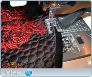 Теперь эти пироги нам надо простегать сеткой , шаг 1 см. Отмечаем две диагонали под 45 градусов относительно края. Подбираем нитки в цвет и меняем обычную лапку на лапку с верхним транспортером.