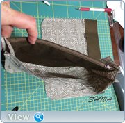 Обработка прорезного кармана на молнии с накладной рамкой на подкладке сумки