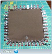 Отмечаем места разрезов. Вырезаем из плотного материала квадратик в размер и тоже отмечаем места разрезов. Я обычно использую или кожу или кожзам.