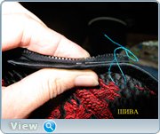 отгибаем лишний кусок молнии и от закрепки продолжаем строчку до конца бейки (сорри, эта фотка была сделана на другой стороне молнии, но думаю понятно объяснила)