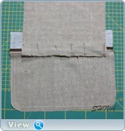 Переворачиваем заготовку на изночную сторону, выравниваем и подгибаем, приметываем подгибку. Не обращайте внимания на вид стежки с изнанки, изначально планировалась подкладка