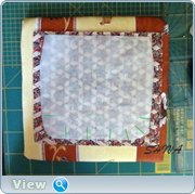 Продолжаем. Вырезаем два куска стнтепона 30х30 см, в размер квадратов. Складываем два пирога. Лицо+синтепон+подклад и подклад+синтепон+подклад.
