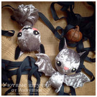 еще к Хеллоуину задумались летучие мышки, но первая партия сшилась только к НГ, а вторая еще дожидается сборки. На ярмарке первые улетели. Две девчонки их сразу схватили ))) Самой нравятся буземно. Я в них влюбилась, когда увидела.