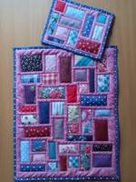 Первый комплект сшит по давней хотелке. Когда-то увидела у нашей Ганнуси-Гали в блоге такой МК. Вот теперь решила сшить именно по такой технологии. На трехслойник аппликативно нашиваются прямоугольнички. Готово одеяло(36х46) и одна подушечка (17х22). Галя, спасибо !  :reverans: