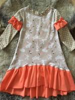 Платья сшиты в количестве двух экземпляров.  ;). С платьями пришлось поработать. Сначала была задумка наряда в пастЭльных тонах с кружевом  по подолу .... сшив основные детали, поняла— цель достигнута, почти  :D , получались постЕльные платья, т.е. ночнушка.  :o. Привнесла немного цвета, похоже удалось немного исправить положение. На все эти пляски мне потребовалось три вечера. Зато для внука сшила быстро и весело, за 1,5 часа.   ;)