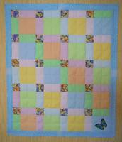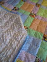 Сшилось одеялко для внучатой племянницы (ткани были подарены Гулей и ИрВасей в Краснодаре на Жаре еще в 2016 году, спасибки  :reverans: ). Размер точно не померила, где-то 100*120см, бек - плюш минки, наполнитель - тинсулейт 100. Простегала шагающей лапкой трехстрочным зигзагом. Использовала блок "исчезающие квадраты". Бейки нет, топ подвернула на бек и прострочила.
