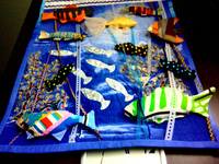 Панно "За семью морями",рыбки снимаются, можно переставить местами.Вся работа из лоскутков и остатков.Рыбки с горошками отложенные для открыток с проекта почтовой марки  :blush:
