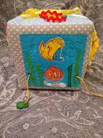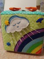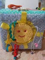 Ой, девочки! Спасибо за отзывы! :tender:Colibri, Наташа! Сюжеты собираю по всему интернету, потом всё перебираю и собираю (создаю) то, что мне нравится. На солнышке разные тесёмки и бусинки для тактильных ощущений, лисичка делает "ку-ку", у облачка бусинки можно убрать, а потом "пойдёт" дождь, рыбку тоже можно двигать. Там ещё 2 грани - яблочко (шуршит) и пирамидка.