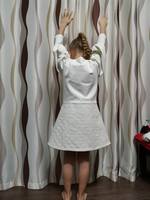 Спасибо,девочки! Да,белое-практически экспромт. Дочь купила платье из кз, белое, и надо было для фотосессии всем троим что то белое. У Кати 19 был д.рождения,ей шила из фатина, решили его одеть,а Варе надо было шить . Дочь как сказала-кожзам, так я и вспомнила- у меня же есть белый,почти белый. Ну и чего не выстегать ? :D Сшилось быстро, дольше после праздника отстирывали.  ;D Она его умудрилась и фломастером и тортом запачкать. Еще не звонили сегодня,вчера стирали.Если что- бум рукав менять.