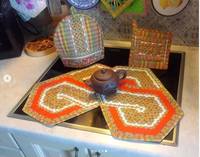 Добрый день, девочки!!! пошила обновки для кухни. Перебирала ткани, нашла небольшие остаточки. Ну и пустила их в дело. Два комплекта в подарок, один - себе.