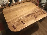 OlNik, рассказываю, тот который целиком стоит как крыло самолёта, поэтому их покупают, но очень редко и не все, да ещё представь сколько это весит, если делать из такого спила столешницу.  А остальные изворачиваются как могут. Муж купил довольно широкие доски, но на целый стол ширины не хватало, поэтому в этих случаях делается склейка по определённой технологии, а бантики по краю - это для того, чтобы дерево не обломилось, если на него сильно-сильно нажать. Короче муж влез в эту тему, всё делал по технологии.