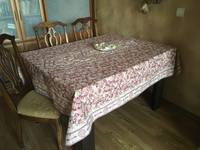 Сшила скатерть для кухни для старших детей. Оказалось, что ткани 2+2 м маловато, или не так что-то рассчитала . Стол 140х100 см, а ткани ушло всё до кусочка.