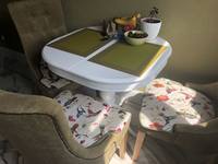 Попросили сшить сидушки на новые кухонные мягкие  стулья, заодно и на подстилку песику хватило. Ткань заказчика, под шторы, тонкий гобелен. Недавно фото в интерьере прислали