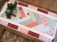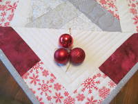 А знаешь почему угол ушёл? Нет? Так вот, когда я пришиваю бейку, то до края не до страчиваю 1/4", а затем прострачиваю под 45 градусов в угол изделия, так в этом случае я малость промахнулась, вот и не легла ткань как положено.
