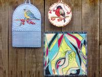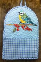 Дочка попросила снегиря, а муж синичку,сшила ему кармашки для пульта 20 на 30см,в этом году синички очень активные, постоянно в окно заглядывают, стучат, мне синичка самой нравится,вышита шелком, блестит,переливается,а для себя довела до ума  многолетнее домашнее задание по многослойной прорезной аппликации и прикрыла ею  некоторый хаос,