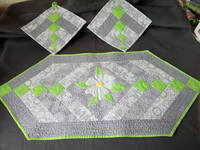 Я тоже коллеге шила в подарок на кухню. И тоже серенько-беленькое попросили. Не удержалась, похулиганила. Она сама сказала, что на всей кухне есть только одна яркая деталь - ярко-зеленая хлебница. И вот что получилось. (Края не фалдят, просто фотка неудачная).