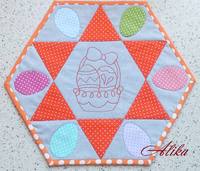 В СП с Ларисой Смирновой шили небольшую пасхальную салфеточку. Я слегка модернизировала предложенный вариант и вот такую салфетку сшила себе: