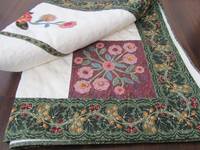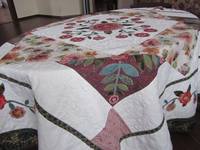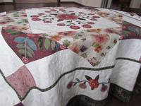 Дошила скатерть на круглый стол (правда не на кухню, а в зал), размер 180х180 см, без наполнителя. Первоначальный проект в EQ в процессе был видоизменен, но в программе уже не исправляла. Сфотала у себя на овальном низеньком столике.