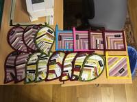 Несколько дней посвятила пошиванию мини-подарков. Пока шила, ушли три листика и два квадратика. Параллельно пытаюсь уменьшить количество кромок. Как было битком три коробки, так и осталось битком три коробки. Они там почкованием что ли размножаются в темноте под крышкой?