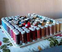 Лёка, Я сейчас в коробку из под обуви на дно положила материал на подобии пенопласта (пеноплекс) и в него палочки от суши навтыкала и на каждой палочке по катушке, но мне главное ,что коробка закрывается у меня же помощник есть :D