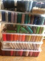 У нас пыли столько, что ничего открыто держать нельзя. Я купила, не смейтесь, из Москвы перла, коробки для обуви, они как раз по размеру мне подходят.Они для больших катушек. А маленькие - коробка из под конфет для #80 и из под какой то техники, по высоте. Самое оно оказалось.