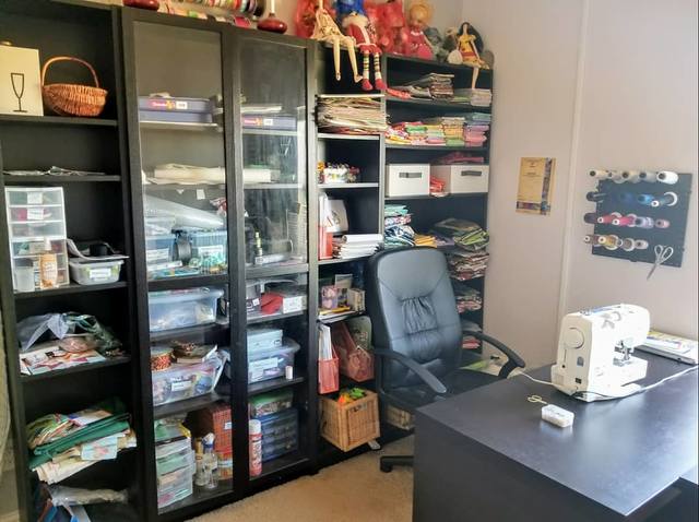 Моя швейная комната. Сейчас сижу думаю, как бы шкафы реорганизовать. Очень ж много места нерационально используется. Много хлама и вещей, которые давно не используются...