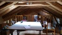 Krona75, Насть, на втором фото у тебя стена с балками - где ты материалы хранить собираешься - так вот, я бы там поставила стол для швейной машинки - стоять там нельзя, а сидеть можно, тем более, там окно сверху, будет дневной свет, это очень хорошо. В Икее есть отдельно столешницы и отдельные ножки для столов, подобрать нужную высоту несложно, сама так делала.