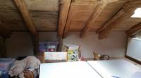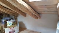 Василисы! Я сюда за вашим коллективным разумом. Обживаю новую мастерскую. Она у меня и большая и маленькая одновременно. Большая, потому что по полу почти 24 кв.м  :o А маленькая вот почему:   :D Это мезанин фактически, под крышей. Стоять можно только в середине и только мне с моими 1.54 росту или детям - муж башкой балки считает. Стены только три. При этом высота двух из них... Короче, на корачках во всем известной позе...  :D Северная стена высота под балками еле-еле 70 см. между балками в самом высоком месте доходит до 1 метра. Вдоль этой стены планирую поставить стеллажи с барахлом шитейным и инструментами. Думала купить Икеевские стеллажи ИВАР глубиной 50 см. Разрезать в высоту их пополам и сделать невысокие в две полки стеллажики. На них коробки всякие. Ставить, наверное, лучше перед балками, потому что, если впихивать к стенке, то, даже на расстоянии 50 см от стены высоты хватит только на позу "ЗЮ". Чем ближе к центру, тем выше потолок. Вот эта стена целиком
