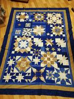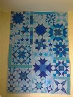 видно устала звезды пристраивать, много их, блин! А еще у меня ткани синих оттенков, которые использовала закончились или остались в небольших количествах. Вот я и думала, как их полностью израсходовать и не резать новые.