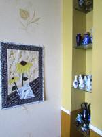 Вчера на нашей регулярной встрече нижегородских Василис Хаврошечка вручила мне подарок от Людмилы. В ответ за приз "Желтые цветы в вазе"она подарила мне свой  конкурсный квилт. Очень душевная работа, уже заняла свое место на стене. Хожу мимо любуюсь. Милочка, спасибо!